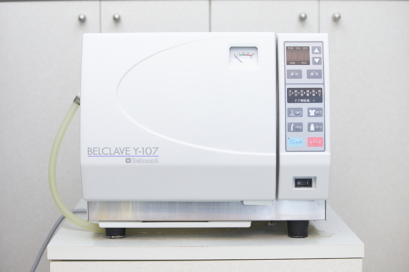 当院ではあらゆる器材の滅菌が可能なオートクレーブを使用しています。清潔な機器を毎回患者様ごとに使用し、安心・安全な治療を受けていただけるよう心掛けています。